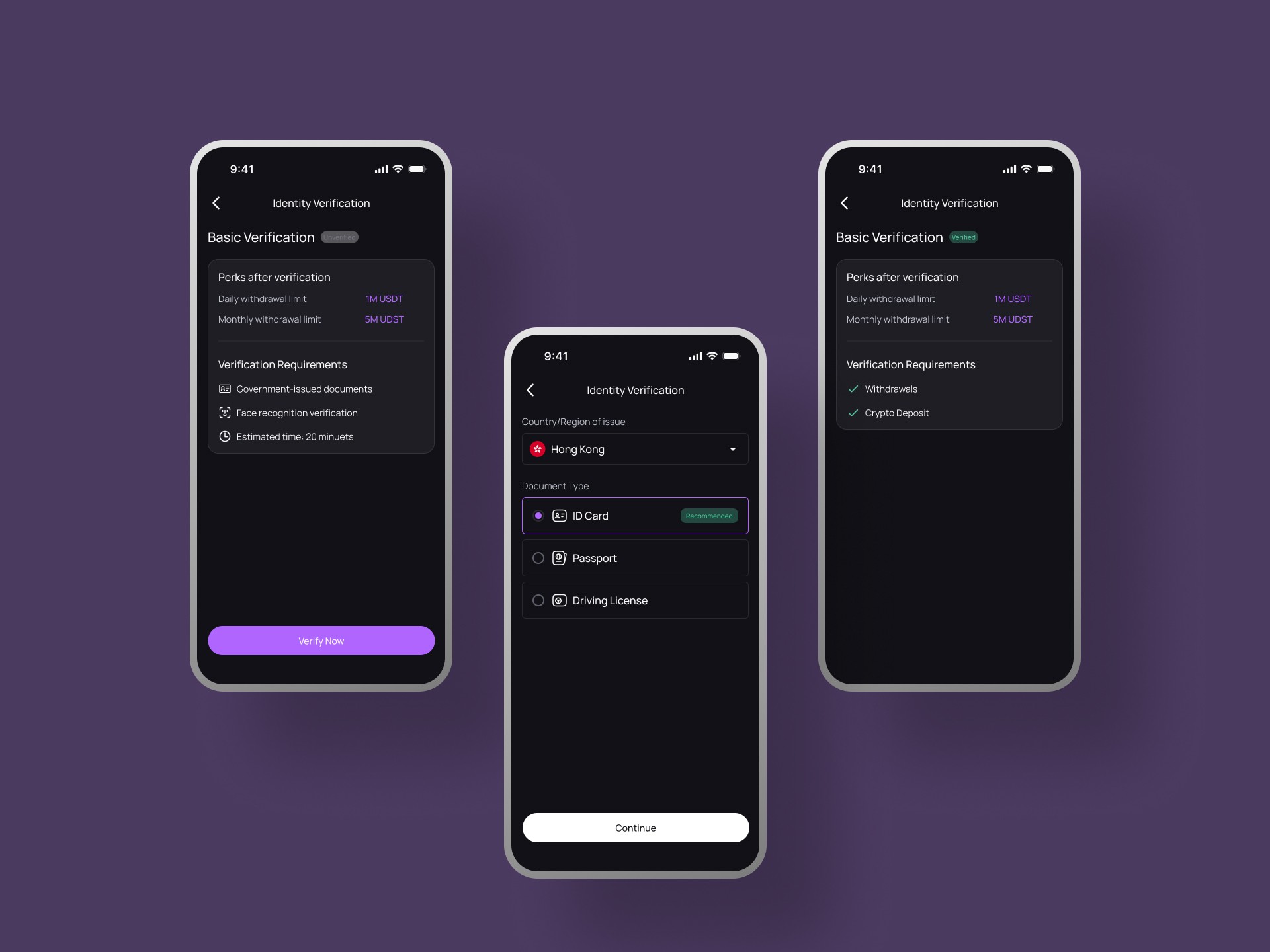 Beyond designing key surfaces, I ensured the platform behaved like one coherent product. I set design principles, reviewed product decisions, mentored designers, and partnered closely with product and engineering to balance usability with compliance requirements — a constant tension in crypto products.
